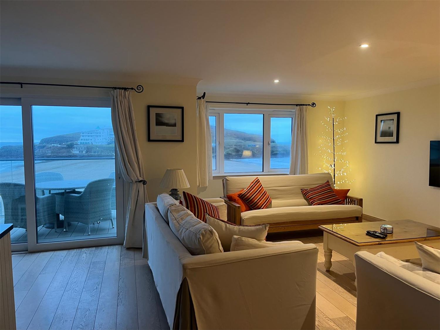 Apartment 22 is a top floor apartment with stunning views to south and west. Big glass doors opening onto a balcony where you can sit and enjoy the perpetually changing views. At high tide the sea sometimes laps the foot of the wall below the apartment and when the sea is rough waves collide from either side of the island in a breathtaking display.